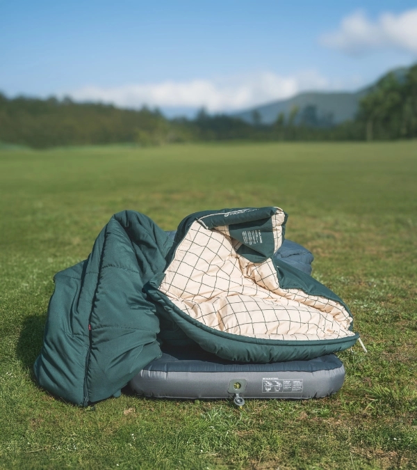 • Zwei Einzelne können zu einem Doppelschlafsack verbunden werden