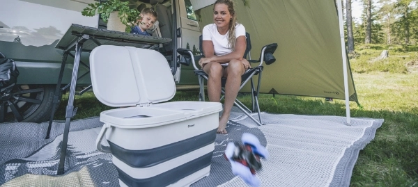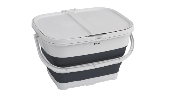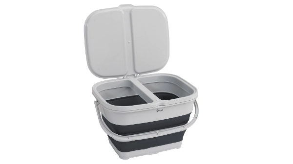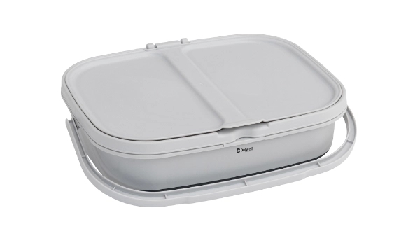 Der zweiteilige Collaps Recycleit Eimer mit Deckel ermöglicht es, Abfall in Tüten zu sortieren, um Gerüche und Insekten zu vermeiden. Heben Sie Deckel und Rand an, wenn Sie den Eimer für Müll verwenden möchten, oder falten Sie ihn einfach und schnell zusammen, wenn er nicht in Gebrauch ist.