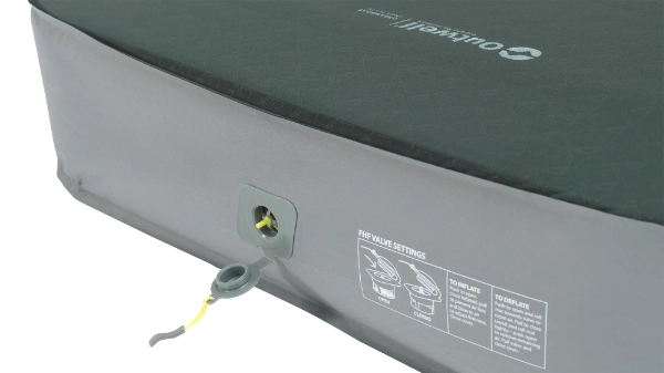 Die Einzel- und Doppelmodelle der Dreamboat-Kollektion in verschiedenen Stärken sind mit einem Outwell® FHF (Flat High-Flow) Ventil ausgestattet, das den Luftstrom sowohl beim Aufpumpen als auch beim Entleeren erhöht. Die vertikalen statischen Stoffpaneele an der Seite biegen sich nicht unter Druck, was das Aufpumpen erleichtert, da weniger Luft in die Matratze gepumpt werden muss.