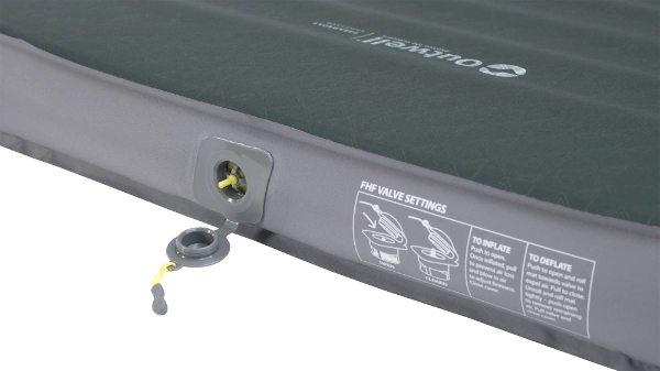 Die Einzel- und Doppelmodelle der Dreamboat-Kollektion in verschiedenen Stärken sind mit einem Outwell® FHF (Flat High-Flow) Ventil ausgestattet, das den Luftstrom sowohl beim Aufpumpen als auch beim Entleeren erhöht. Die vertikalen statischen Stoffpaneele an den Seiten biegen sich nicht unter Druck, was das Aufpumpen erleichtert, da weniger Luft in die Matratze gepumpt werden muss.