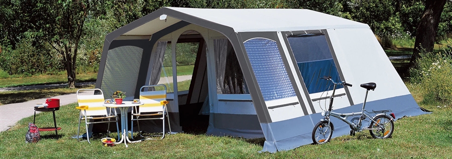 Zeltgewebe, Gestänge, Innenzelte, Gardinen und Abspannmaterial.