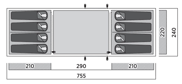• Vis-a-vis-Familienzelt mit separater Schlafkabine an jedem Ende