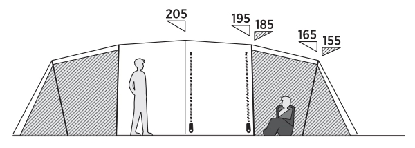 Leka Twin 8 ist ideal für Freunde und größere Familien, die Platz und Flexibilität benötigen. Das Zelt hat ein Vis-a-vis-Design mit einem geräumigen Wohnbereich und separaten Schlafzimmern an jedem Ende. Fenster auf beiden Seiten mit ausziehbaren Vorhängen und zwei gegenüberliegende Eingänge sorgen für Licht, Belüftung und einfachen Zugang. Das mit dunkleren Materialien und optimaler Belüftung gestaltete SleepTight-Innenzelt sorgt für einen erholsamen Schlaf. Die abgedeckte Belüftung an beiden Enden ermöglicht einen regulierbaren Luftstrom, während die Kopffreiheit im Wohnbereich und praktische Abspannleinenhalter für zusätzlichen Komfort und Bequemlichkeit sorgen.