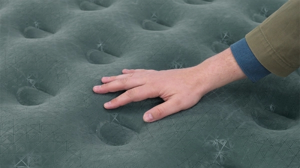 Diese hervorragende Matratze ist mit einer festen Kante konstruiert, die die Stabilität verbessert. Das strapazierfähige PVC-Material ist mit weichem Velours bezogen, was einen außergewöhnlichen Komfort bietet. Weitere Details umfassen ein Doppelventil und eine Tragetasche.