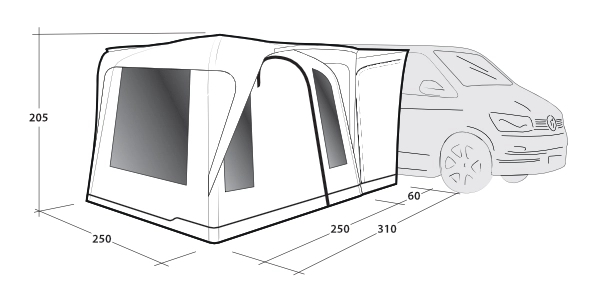 Outwell Daytona Air Drive-Away-Zelt verfügt über das One-go-Aufblassystem für einen einfachen Aufbau und ist ideal für Paare und kleine Familien, die zusätzlichen Wohn- und Schlafraum benötigen. Dieses schlanke, parallel montierte Design lässt sich an Ihrem Wohnmobil befestigen und bietet Stabilität und Vielseitigkeit mit Luftschläuchen. Regenfeste Vordächer über den Vorder- und Hintertüren sorgen für einfachen Zugang und guten Belüftungsschutz, selbst bei schlechtem Wetter