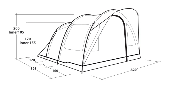 Outwell Sky 5 Tunnelzelt mit Gestänge bietet viel Platz und Komfort für Familien. Es verfügt über zwei verdunkelte Schlafzimmer, die Platz für bis zu fünf Personen bieten und für einen erholsamen Schlaf sorgen. Für optimalen Komfort verfügt das Zelt über eine einstellbare Belüftung an der Rückseite und eine niedrige Belüftung unter dem Fenster. Die benutzerfreundliche, mit Mesh ausgestattete J-Tür erhöht den Komfort des Zeltes.